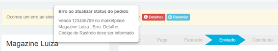 Es posible actualizar las informaciones de factura o envío de los pedidos que tuvieron error en su actualización para el Marketplace.