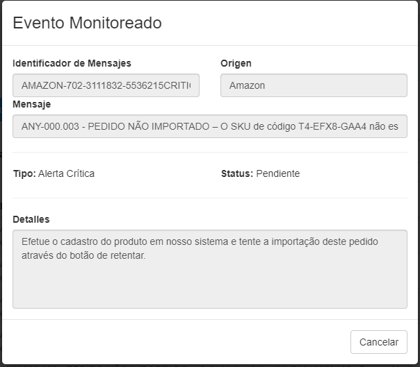 Otro posible caso seria que el pedido haya fallado por "TIME OUT" es decir el proceso no alcanzo a completarse debido a que demoró en responder, por lo que para estos casos se sugeriría volver a importarlo.