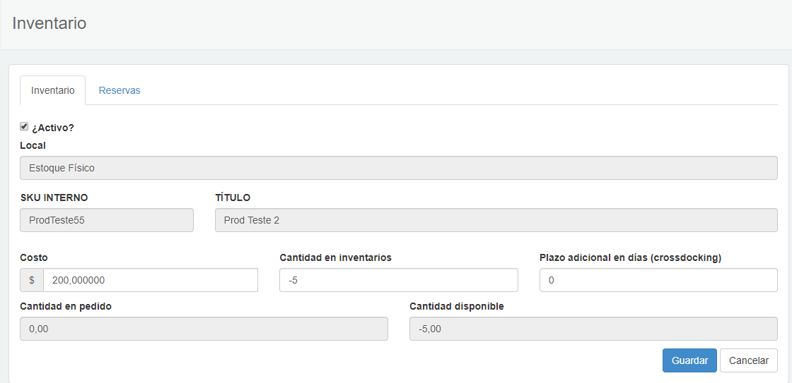 4. Edite el campo “Costo”;
