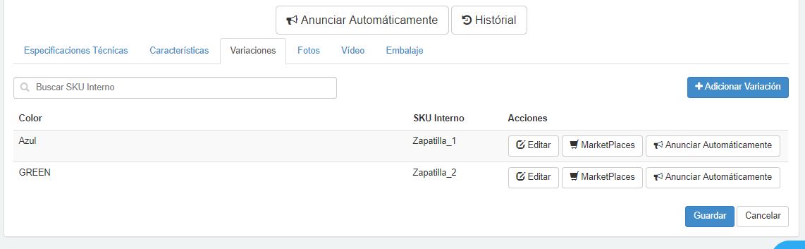 Para transmitir productos con variaciones para los Marketplaces, siga las instrucciones: