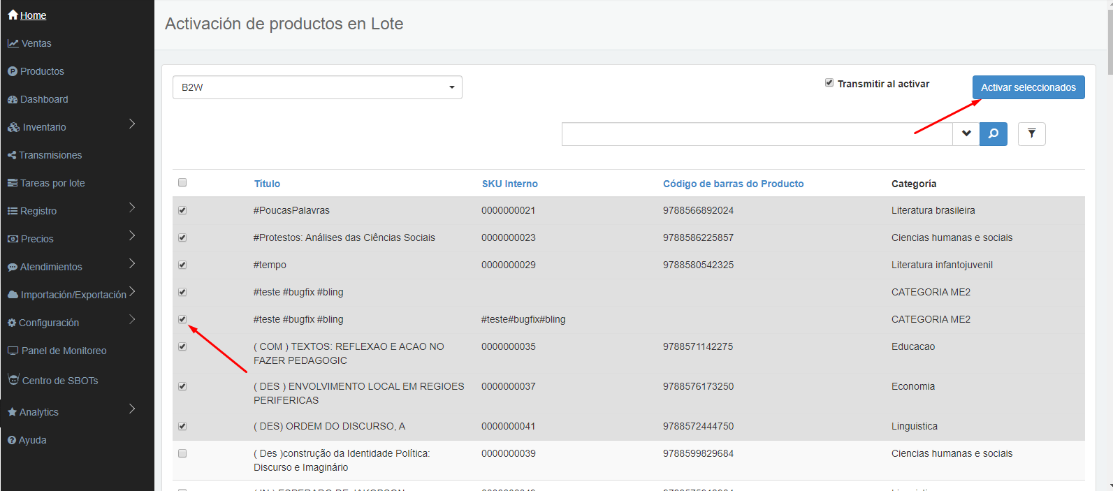 - Después de seleccionar todos los productos, haga clic en “Activar seleccionados”;