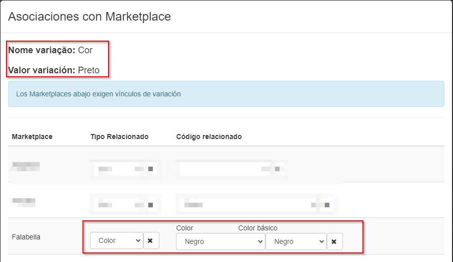 Para vincular las variaciones registradas en ANYMARKET con las variaciones disponibles en Falabella, es necesario acceder a la pantalla: