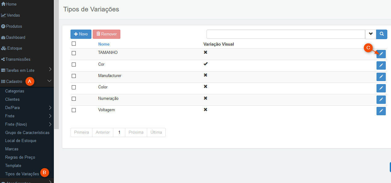 A Registro >> B tipos de variaciones >> C editar variaciones