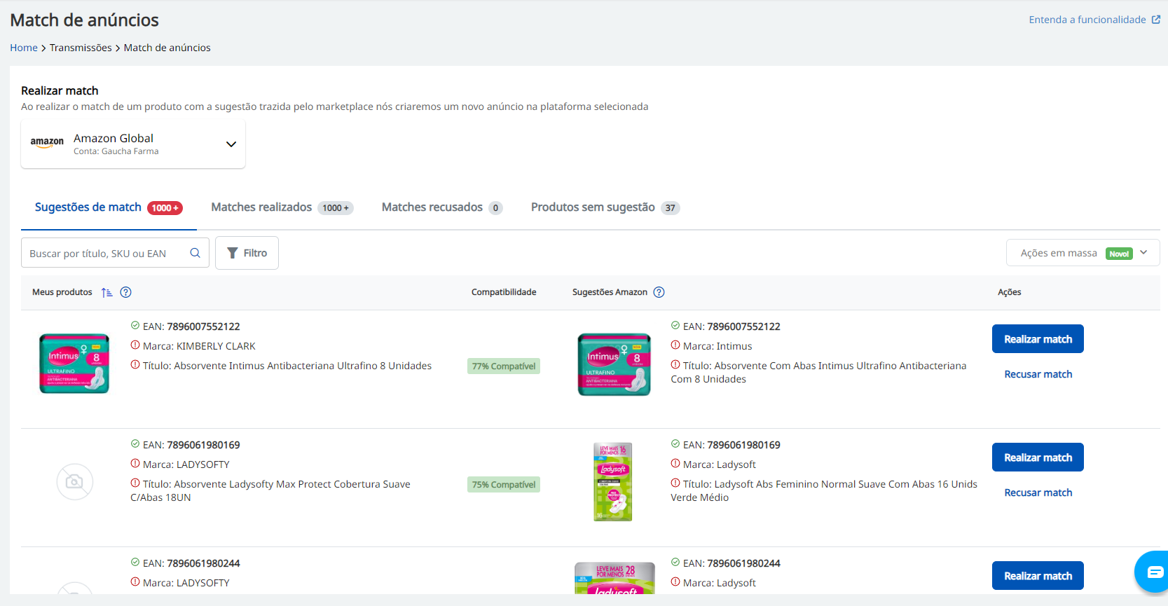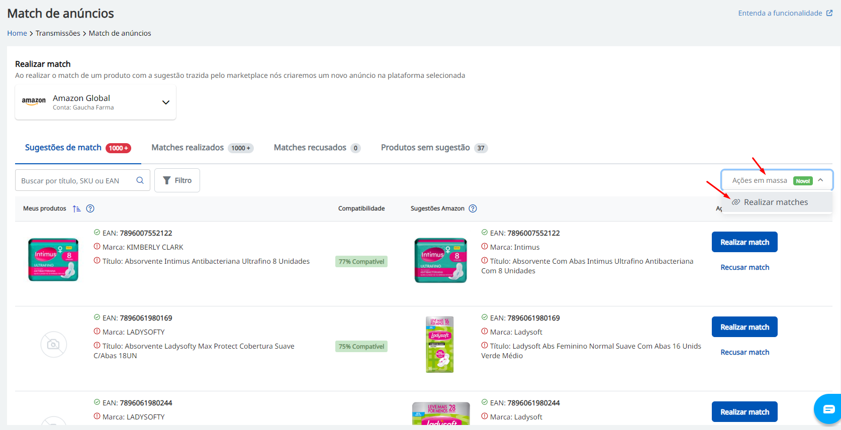 También es importante saber que el Match de Anuncios solo funciona para la nueva integración (API) de Amazon. Esto significa que solo si tu cuenta ya ha sido migrada, este recurso funcionará. Si tu cuenta aún no ha sido migrada, puedes solicitar esta migración al soporte.