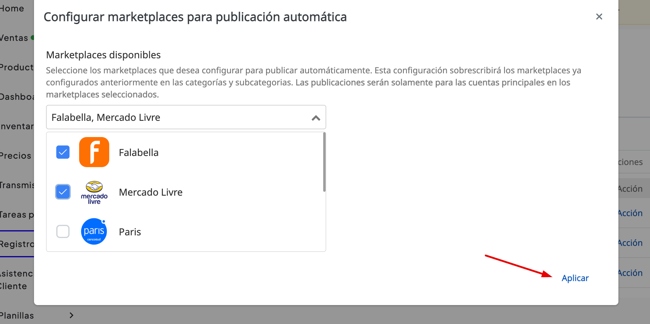 3. Seleccione los canales de venta en los que desea configurar la publicación automática: