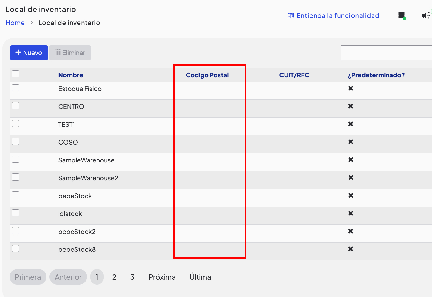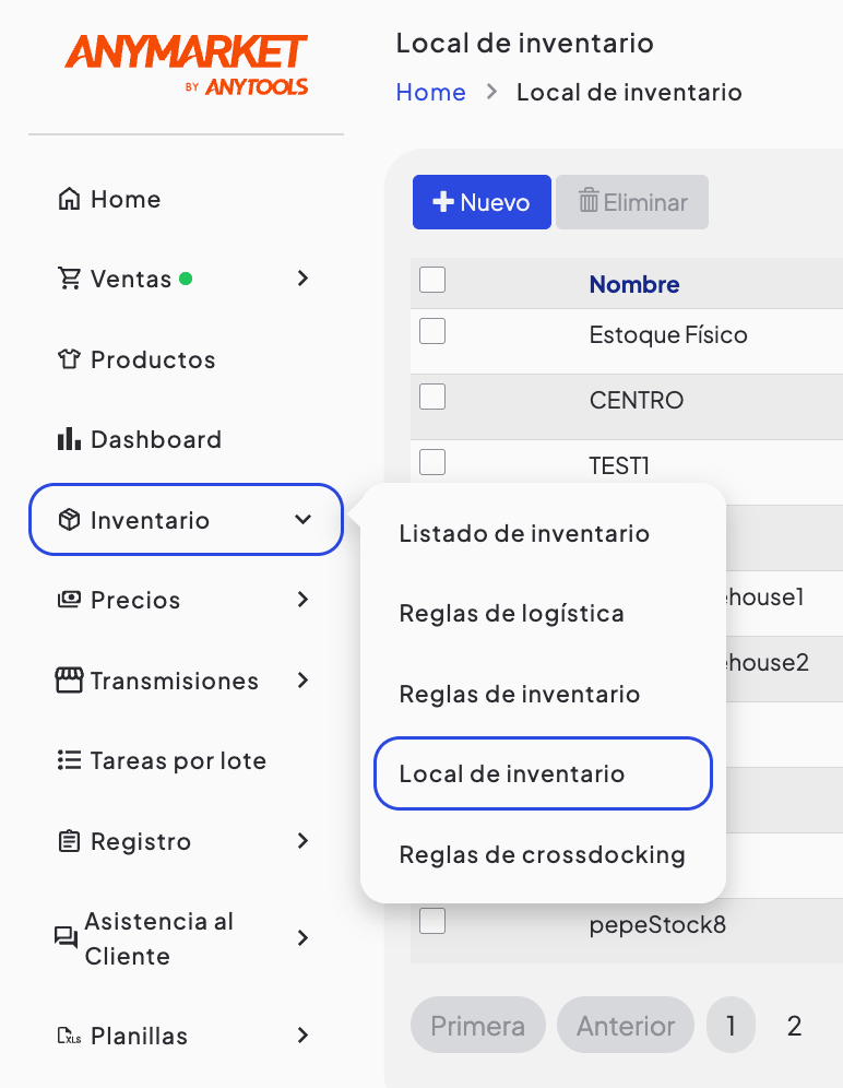 Un punto a destacar sobre el cálculo automático del costo del envío gratuito es la condición del código postal. Para que Anymarket pueda solicitar a Mercado Libre el importe correcto a cobrar, necesitará conocer el código postal vinculado al anuncio y, para ello, recuperaremos el valor configurado en la siguiente configuración: Inventario > Local de inventario.