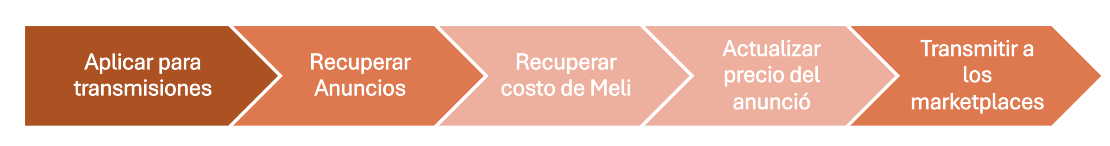 Cuando se crea una fórmula con la opción de cálculo automático activa, esto implica que el costo del envío gratuito se recuperará individualmente para cada anuncio y, posteriormente, se aplicará en su formulación de precio, tal y como se muestra en el siguiente flujo: