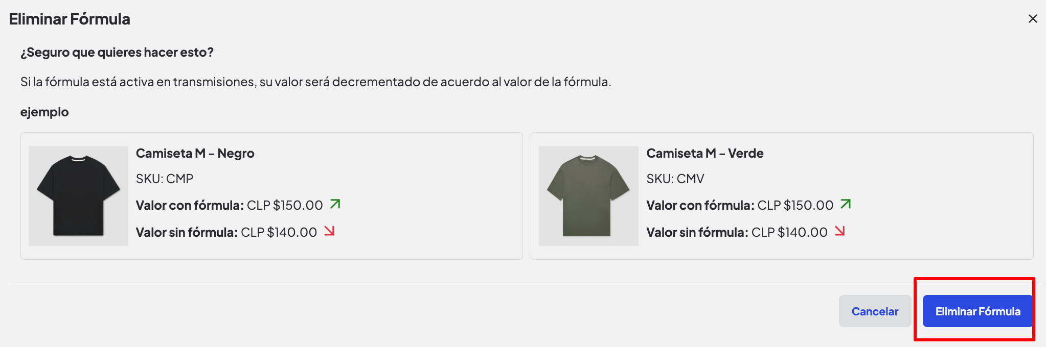 Para editar, simplemente realice los cambios que desee y seleccione la opción «Confirmar». Al hacerlo, el sistema le pedirá que confirme el cambio y, a continuación, comenzará a aplicar la fórmula en las transmisiones.