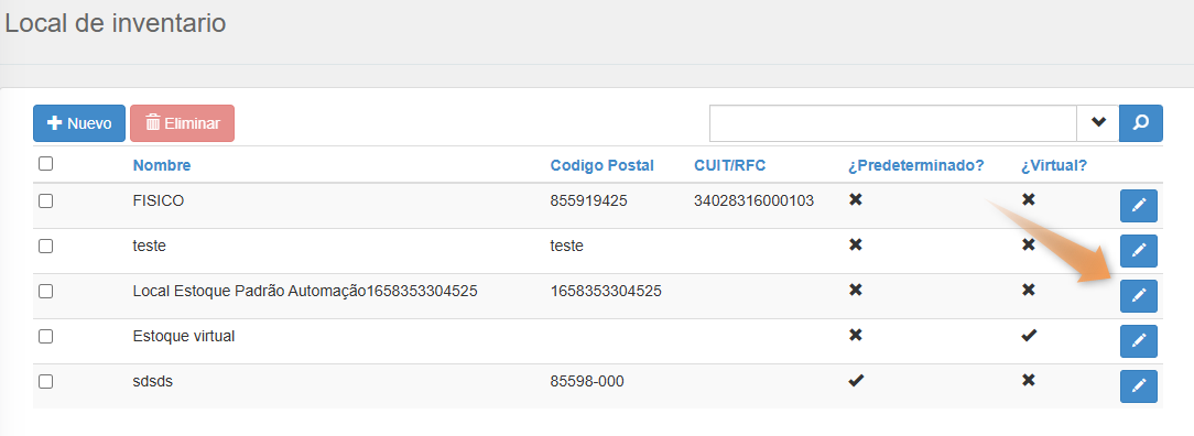 Desde el menú, ve a: Inventario > Local de inventario > Editar.